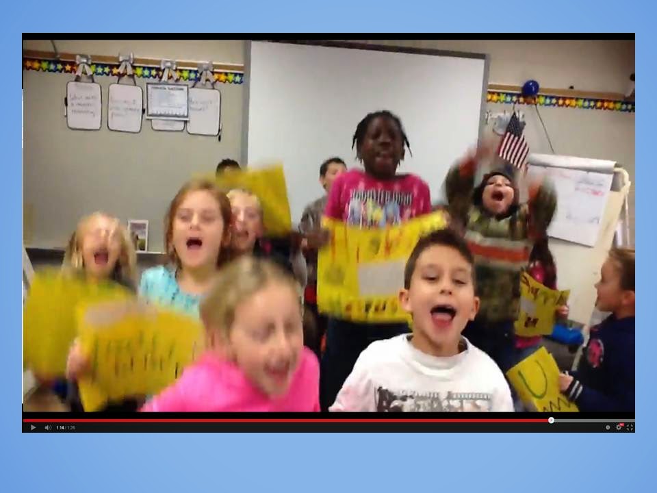 that high school students come and help elementary teachers. I was fortunate enough to have two helpers this semester. Both girls helped me make Jeopardy games using power points, make videos, paper slide videos, and Telegami videos. I must admit I did not really understand how to play or make Jeopardy games. One of my helpers came during our specials time and we sat down together and she helped me understand how the game was played and how to enter the various content that I needed to enter. One of the students helped me make videos and upload them to You tube. She also helped me turn videos upside right when they came out sideways. I have NO idea how that happened!