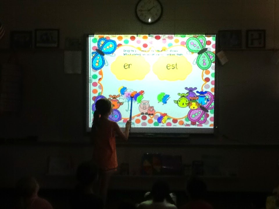 I am having my first giveaway in my Teacher's Notebook store Lilly's Grace (after clicking on the store name you must go to the giveaway section to enter). I am giving away the Smart Board presentation "Adding er and est to Adjectives." It contains both instructional and interactive slides and is one of the prettiest things I have ever made. My students loved playing it and were able to choose when to use the different endings and explain why! If they choose a correct answer the answer will spin, if they choose incorrectly the answer will shoot out of the sorting pile and back to its spot.I love it too!