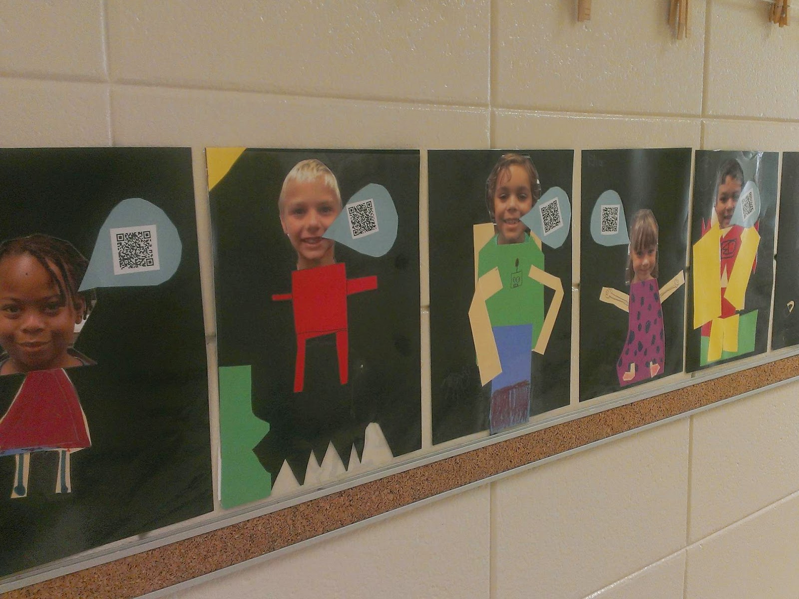 I have blogged before about my dear friend at work(Kathy Faletto) that always expands on good ideas. Well, her and I worked together on Another Take On A Pinterest Idea. Last Spring we asked our exiting second graders to write messages to the incoming second graders. They made construction paper self portraits and we put their messages on QR codes and hung them in the hallway for our Meet and Greet. My idea was to have them write messages about their favorite things in second grade. But Kathy expanded on that and had her students write about specific parts of her classroom.