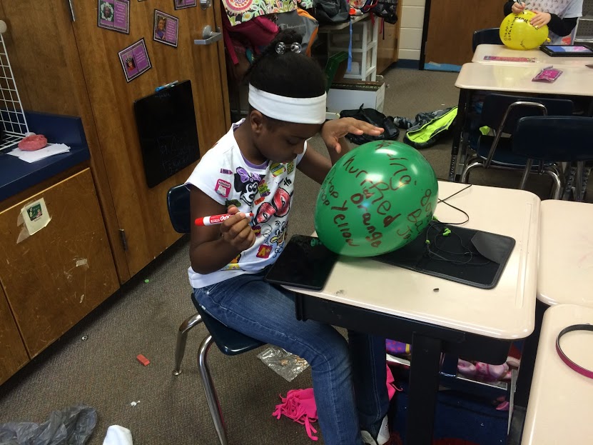 They wrote 100 adjectives on balloons. They learned to use thesaurus.com.