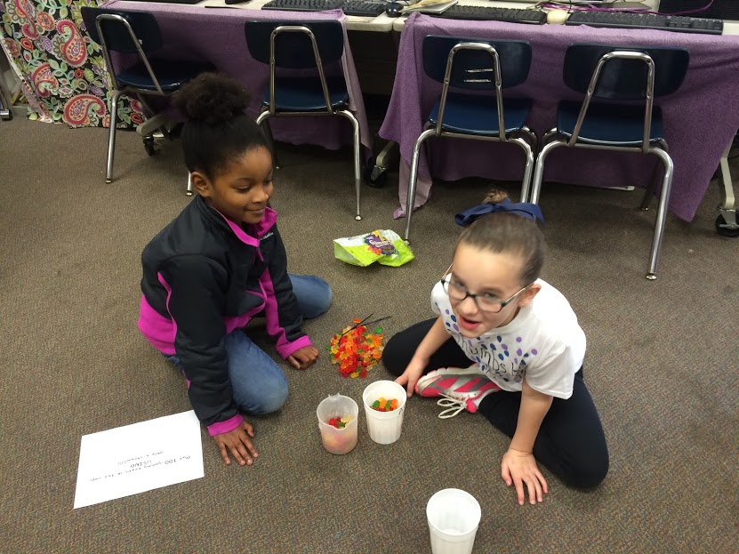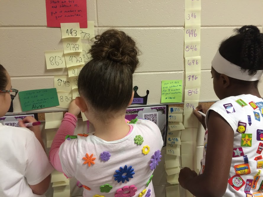 We started our day with interactive number lines. Students were all given different numbers to begin with and then were to add or subtract one hundred or ten from their starting numbers.