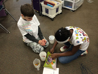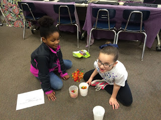 Next we had several centers that they played based on one hundred. They had to build a cup tower out of one hundred cups. Each group was trying to build the tallest tower. As you will see the final pictures show the group that achieved their goal.