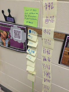 We started our day with interactive number lines. Students were all given different numbers to begin with and then were to add or subtract one hundred or ten from their starting numbers.